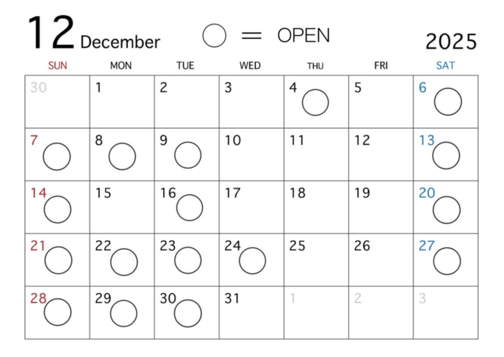 2025/12 営業日 SCHEDULE