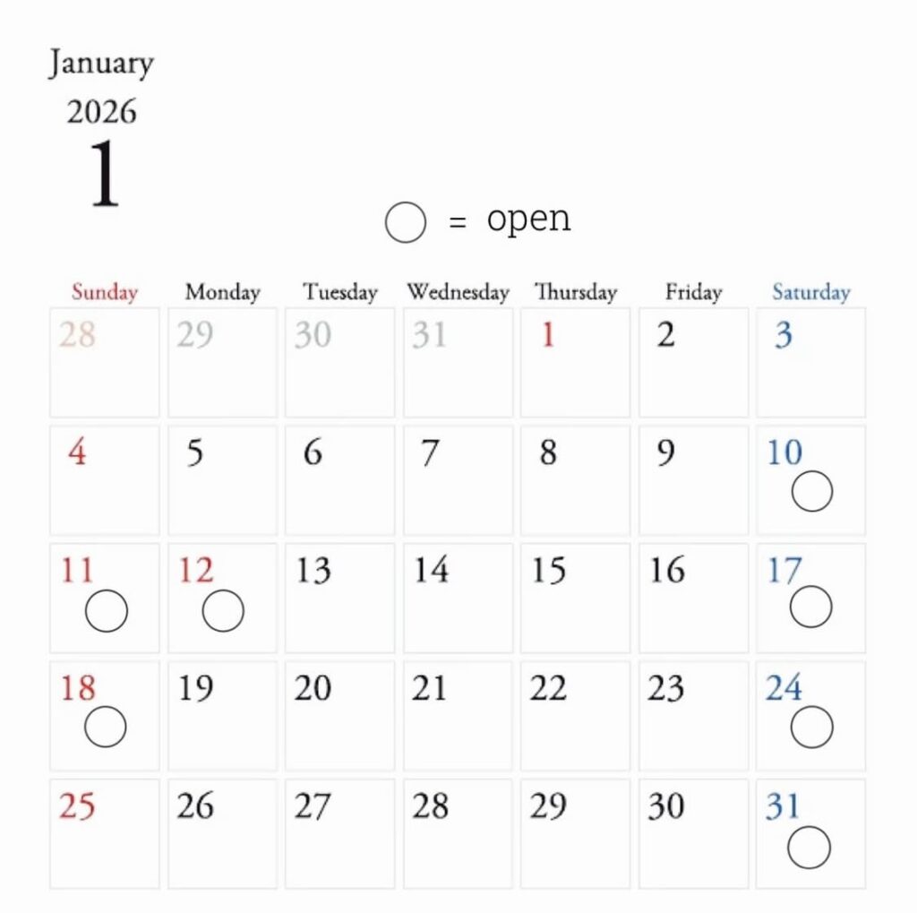 2026.01.06 2026/1 営業日 SCHEDULE ・SCHEDULE 1/3,4 Garage sale 1/16-21 倶知安蚤の市 Kutchan Antique Market Vol.4